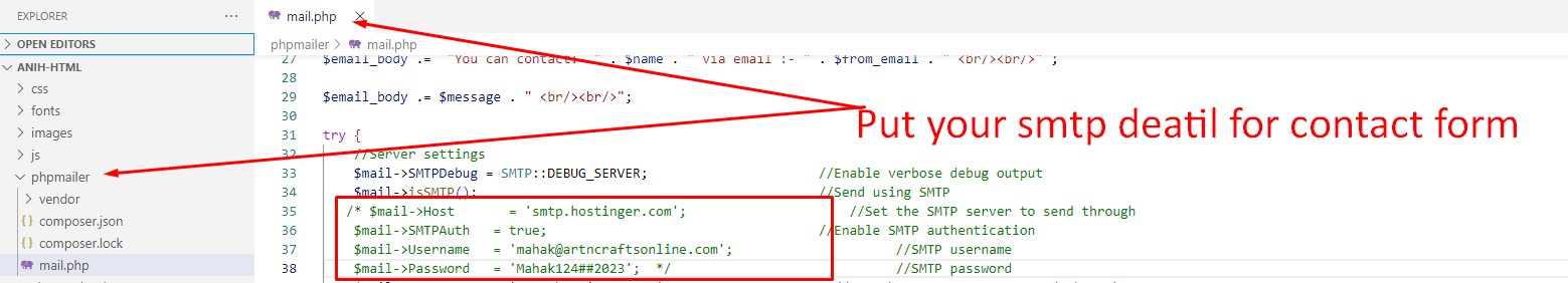 1.You have to put smtp detail inside mail.php file for contact form to run